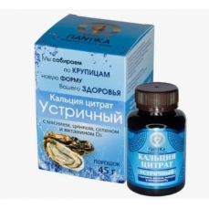 - Цитрат кальция, кроме того, способствует усвоению витаминов Д3, С и важных микроэлементов, неизменно присутствующих в раковинах устриц.